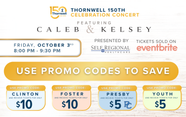 Use Promo Codes to Save for Thornwell’s 150th Celebration Concert Featuring Caleb + Kelsey